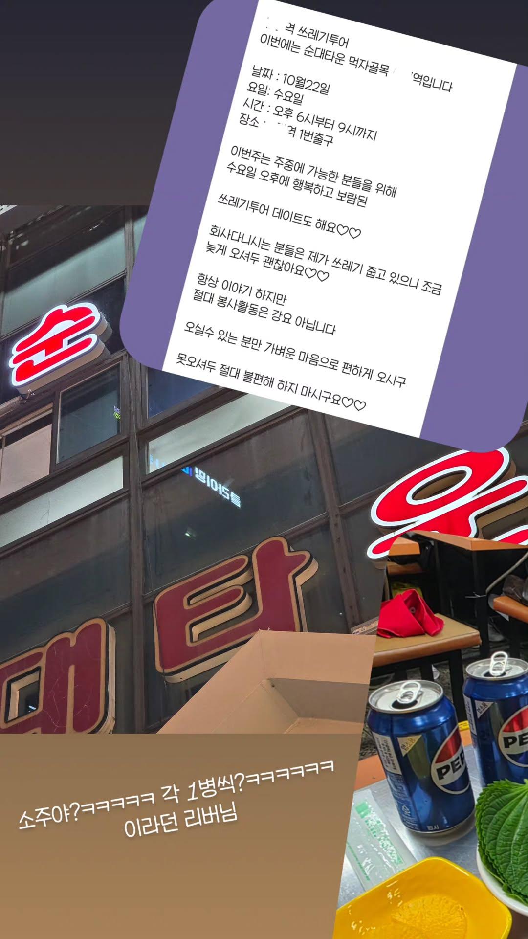 쓰레기를 줍는 분이시거든요ㅋㅋㅋㅋ