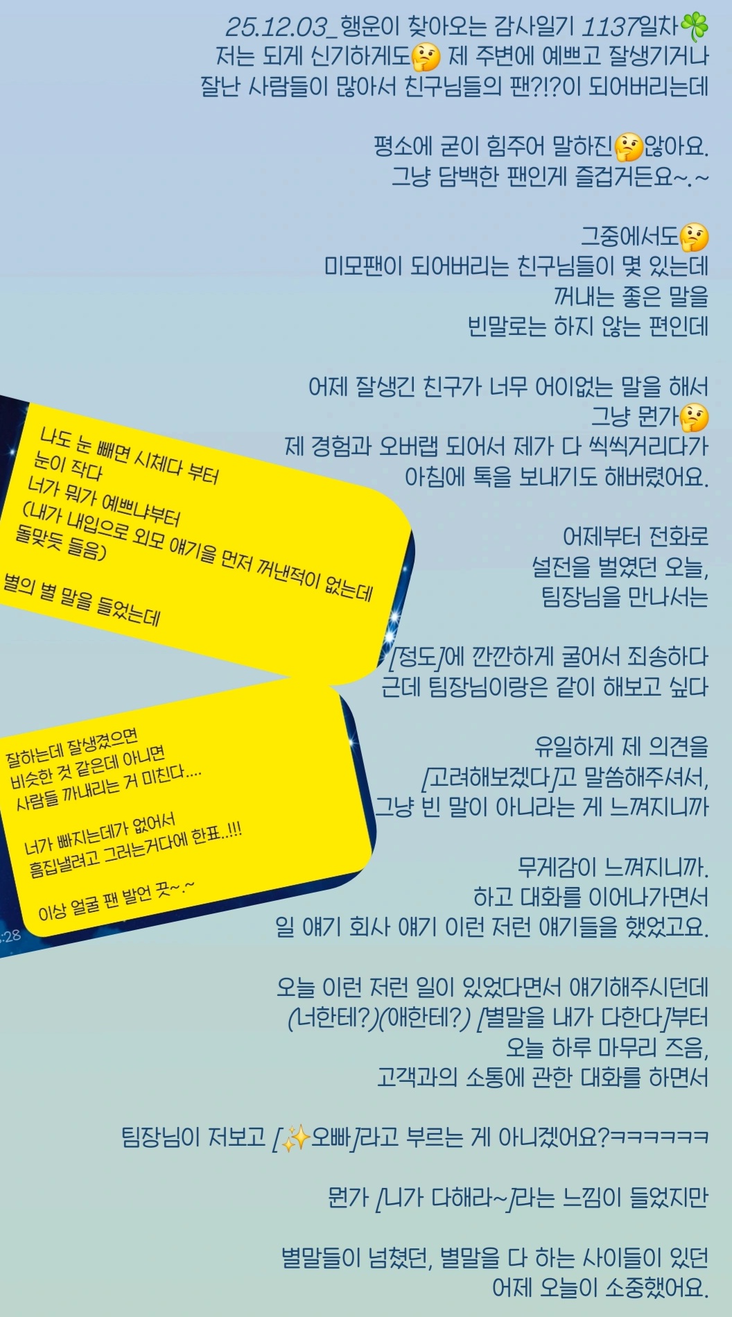 행운이 찾아오는 감사일기 1137일차☘️