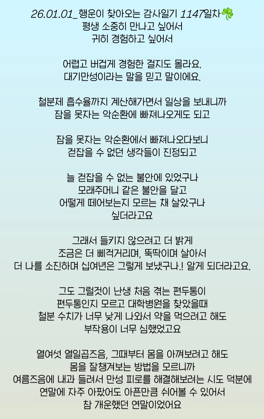 행운이 찾아오는 감사일기 1147일차☘️