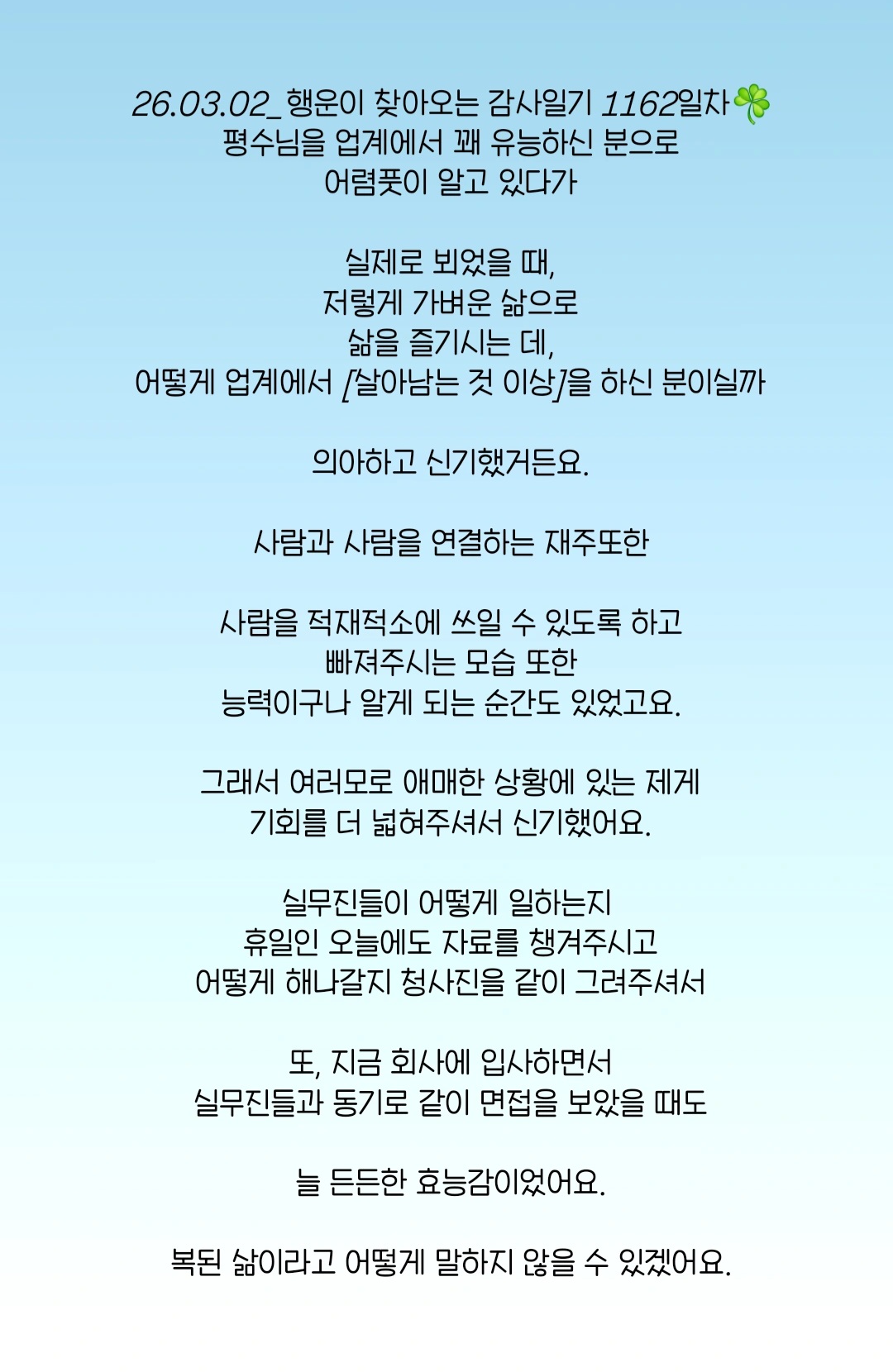 행운이 찾아오는 감사일기 1162일차☘️