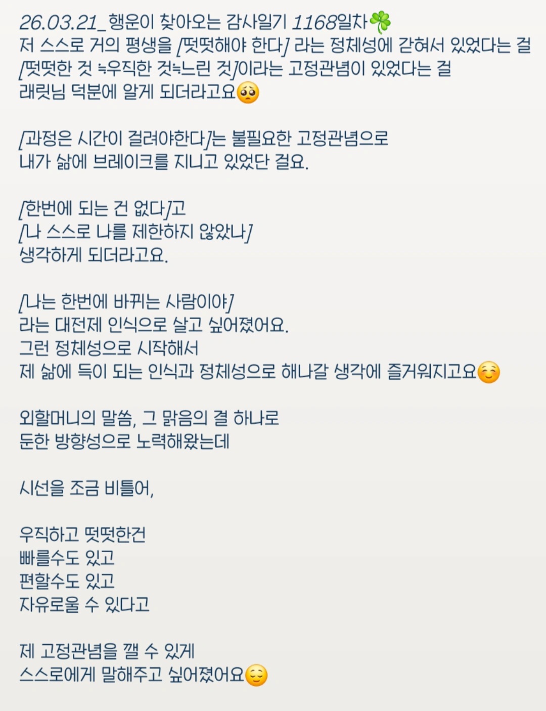 행운이 찾아오는 감사일기 1168일차☘️