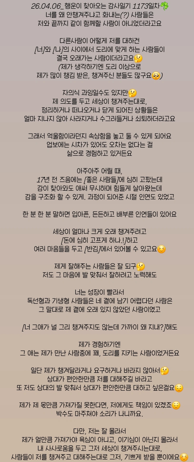 행운이 찾아오는 감사일기 1173일차☘️