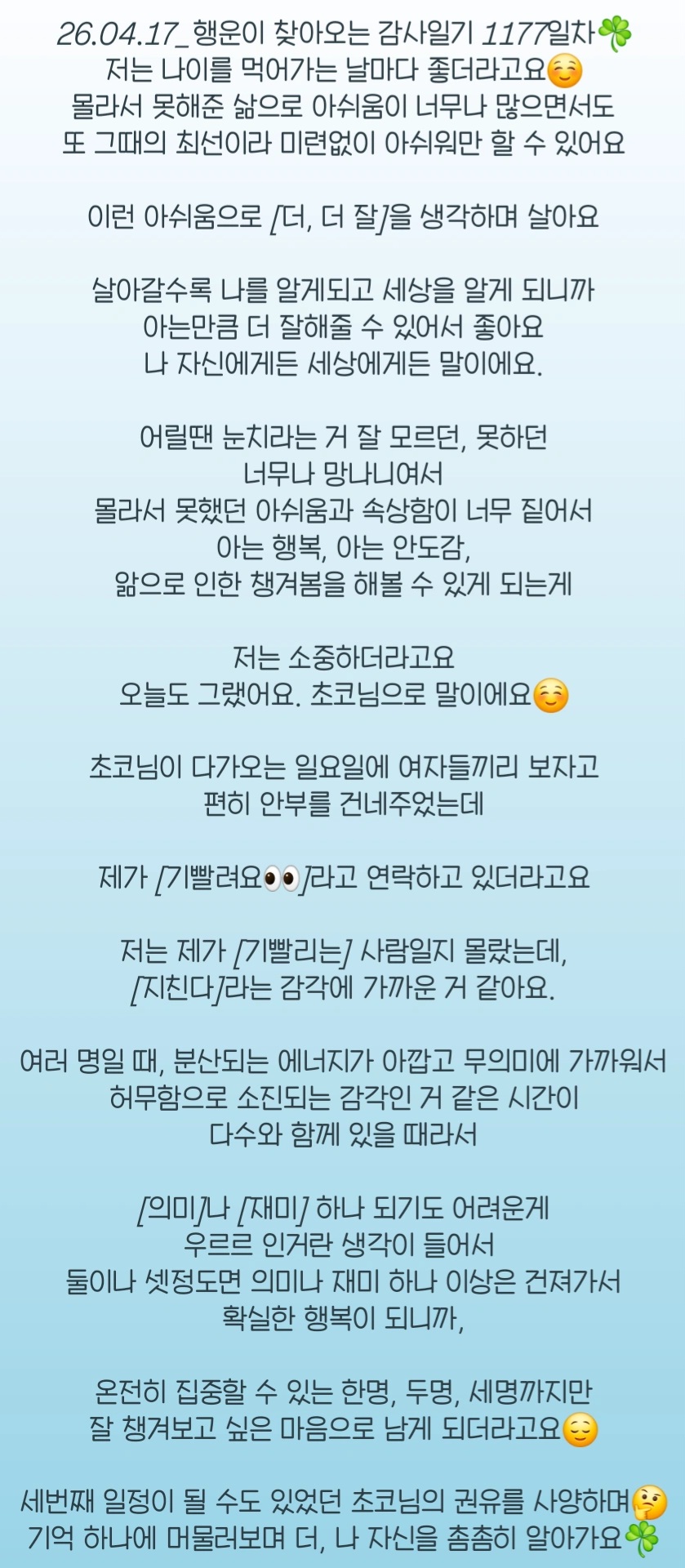 행운이 찾아오는 감사일기 1177일차☘️